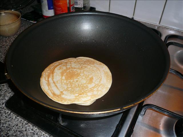鍋子刷奶油或油,熱鍋,放麵糊,小火!!大概可以弄六個比賣當勞大一點點的PAN CAKE