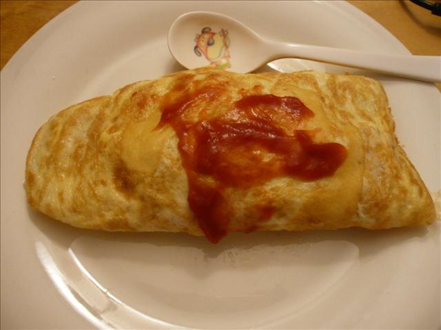 然後就是煎一個薄薄的蛋皮,把飯放進去包起來就可以啦!!